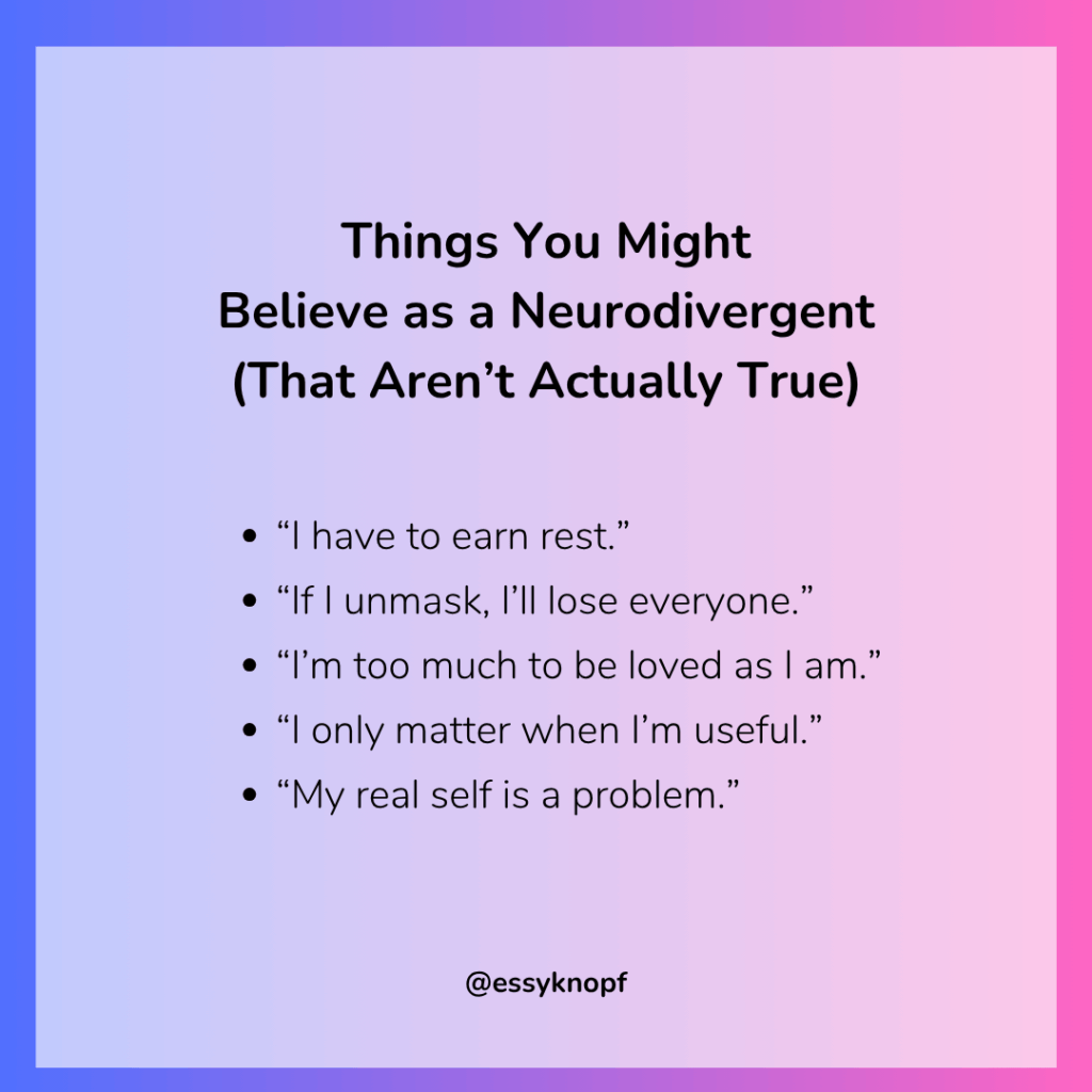 And with every suppressed need, every censored impulse, every moment we say “I’m fine” when we’re not… our neurodivergent self-worth takes another hit.
